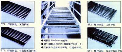 ●我公司生产的踏步板根据有无前护板和与梯梁联接方式有四种形式,表示为:ST1、ST2、ST3、ST4。